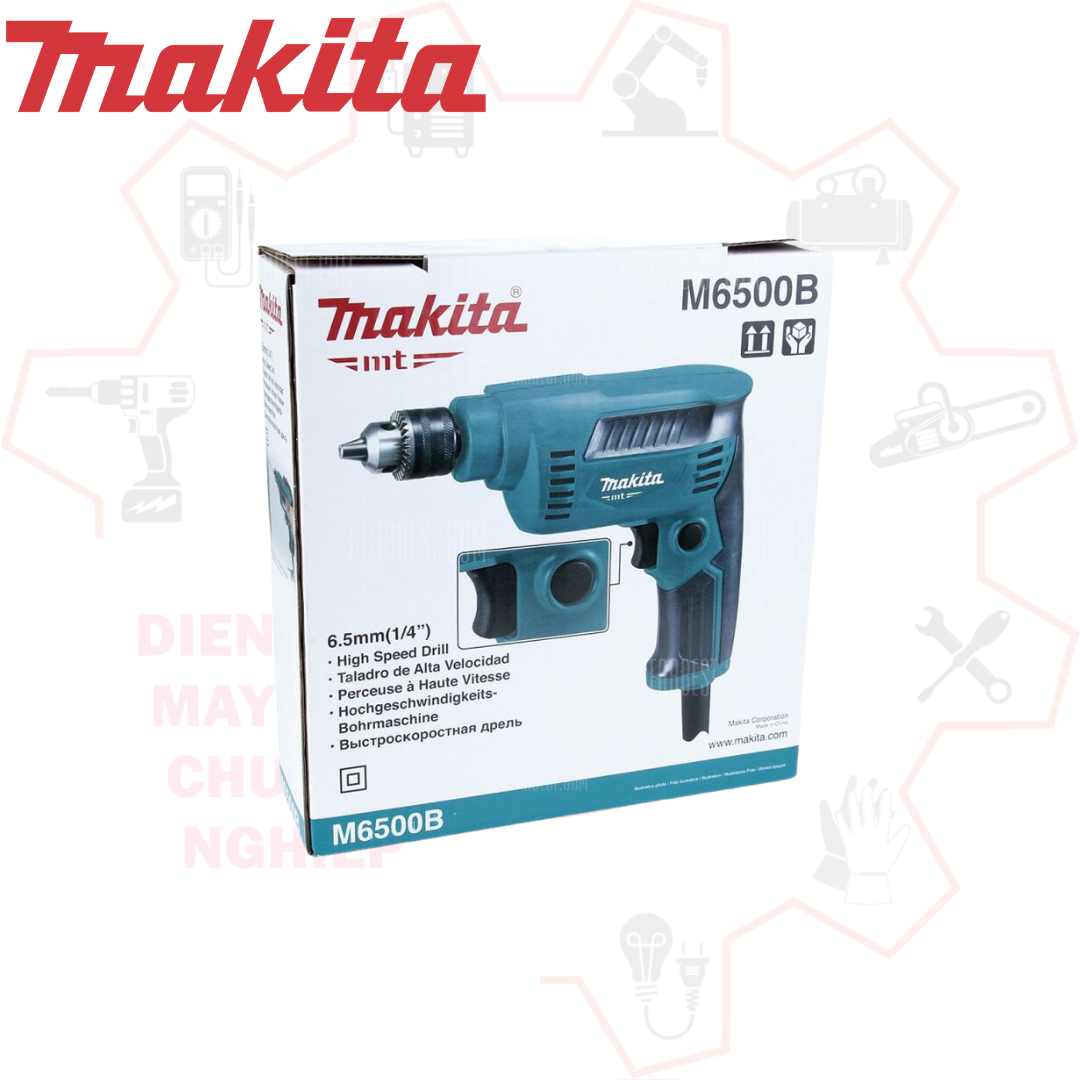 - Máy khoan tốc độ cao Makita M6500B là dụng cụ lý tưởng cho các công việc khoan, vặn vít, đục phá trong gia đình, sửa chữa, lắp đặt, chế tạo đồ thủ công…